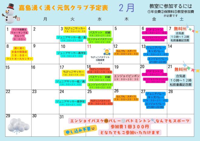 【嘉島湧く湧く元気クラブ 2月予定表】